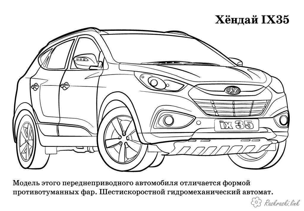 Hundai IX35. Раскраска Hundai IX35 розмальовки для хлопчиків машини завантажити бесплатно онлайн