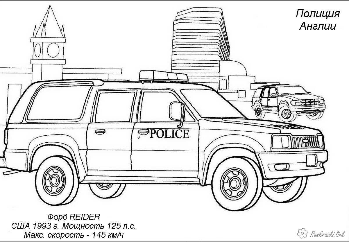 Розмальовка "Машини Поліції". Раскраска Розмальовка машини поліції Англії завантажити бесплатно онлайн