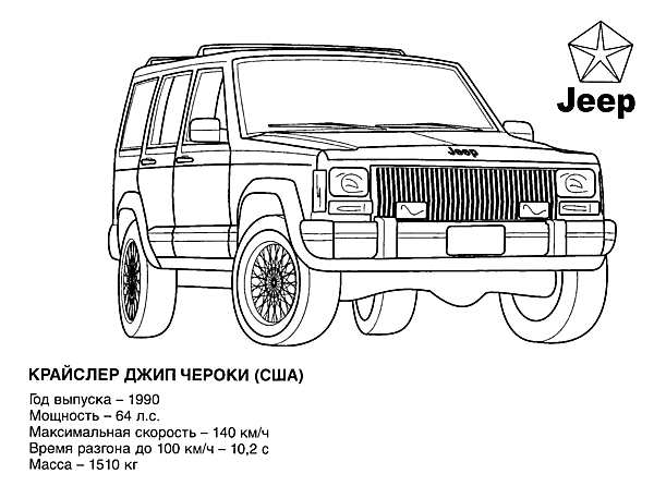 Chrysler Jeep Cherokee mashinи . Раскраска крайслер джип черокі машини розмальовки завантажити бесплатно онлайн