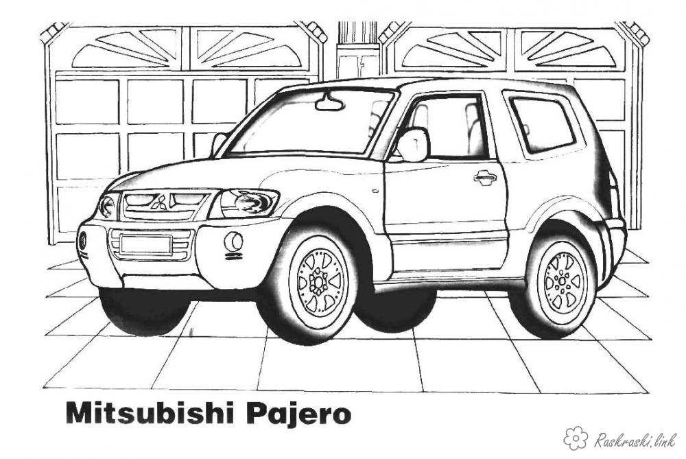 Mitsubishi Pajero. Раскраска Mitsubishi pajerо, позашляховик, джип, розмальовки для хлопчиків завантажити бесплатно онлайн