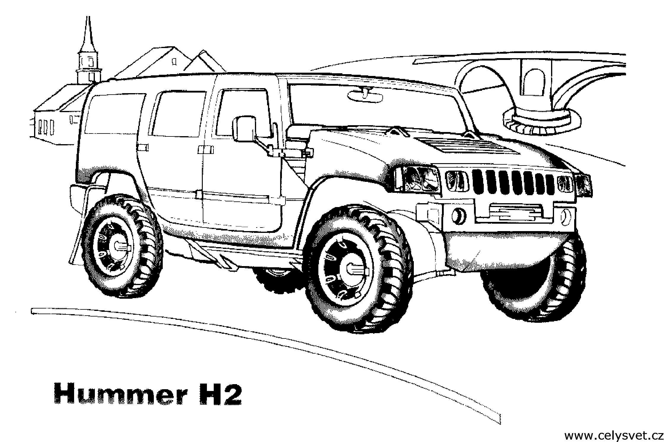 Гарний Hummer H2. Раскраска Hummer H2? розфарбування, міст, церква, дорога завантажити бесплатно онлайн