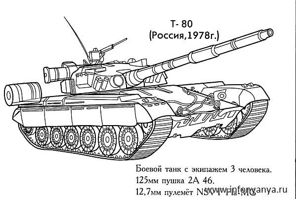 Танк Т-80. Раскраска танк, розфарбувати, бойові машини завантажити бесплатно онлайн