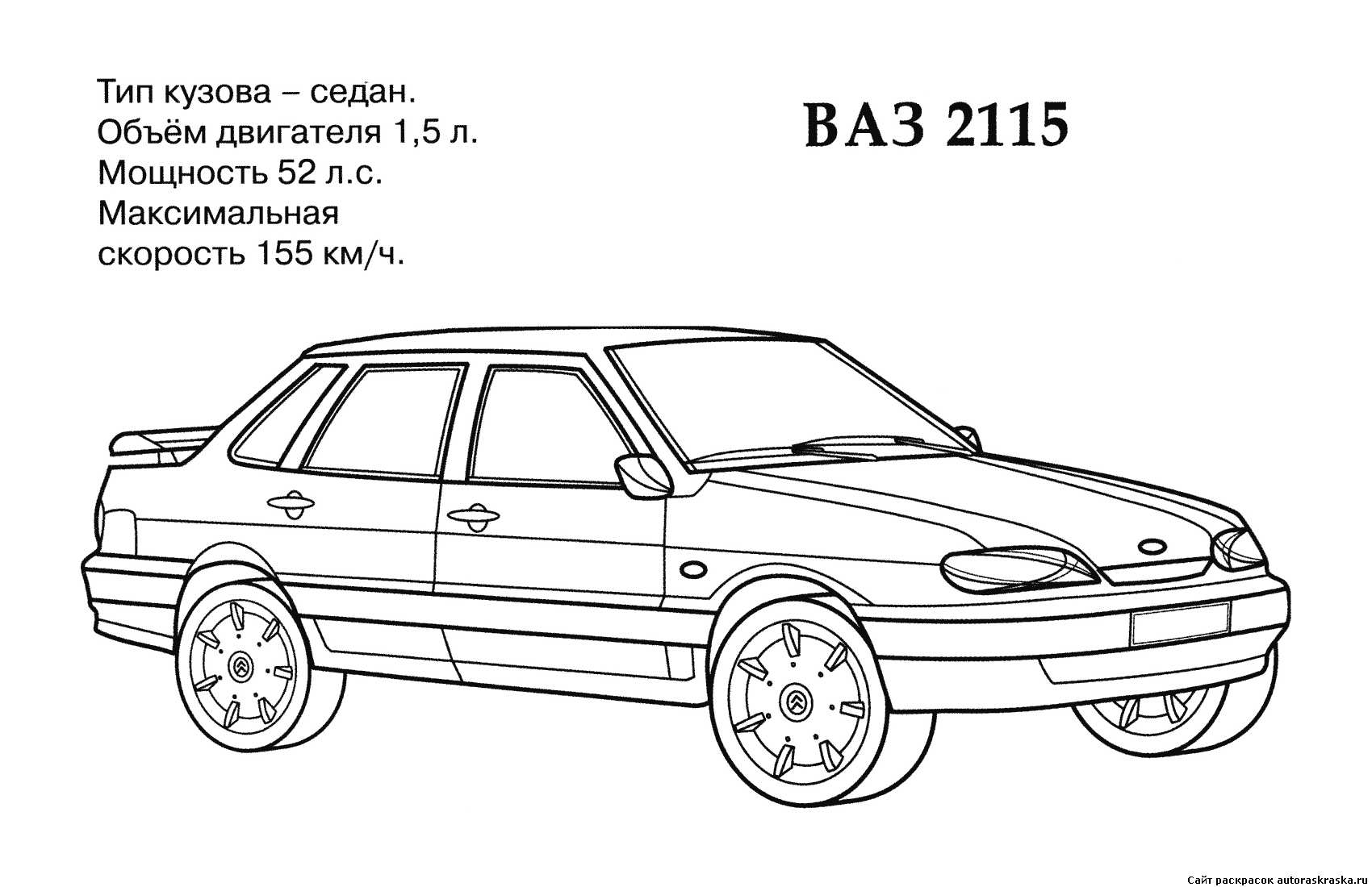 ВАЗ 2115. Раскраска ВАЗ 2115 розфарбування завантажити бесплатно онлайн