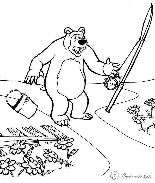 Маша і ведмідь розфарбування. Раскраска розфарбування для дітей, маша и медведь, вудка, риболовля завантажити бесплатно онлайн