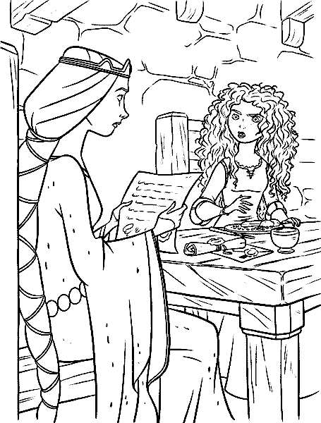 Меріда з матір'ю. Раскраска розмальовки хоробра серцем, Меріда, королева, дівчина завантажити бесплатно онлайн