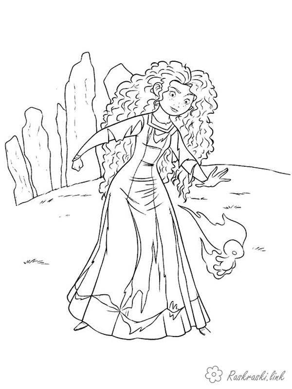 Меріда йде за вогником. Раскраска розмальовки хоробра серцем, розмальовки мультфільми, Меріда, дівчина завантажити бесплатно онлайн
