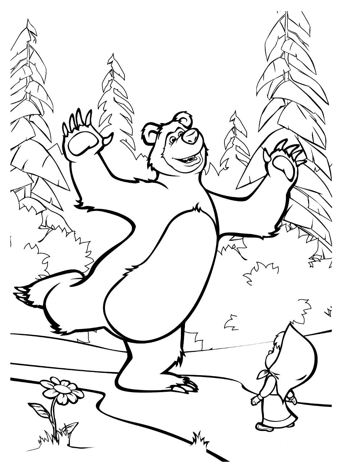 миша танцює з Машею. Раскраска розмальовки маша і ведмідь, ліс, дерева завантажити бесплатно онлайн