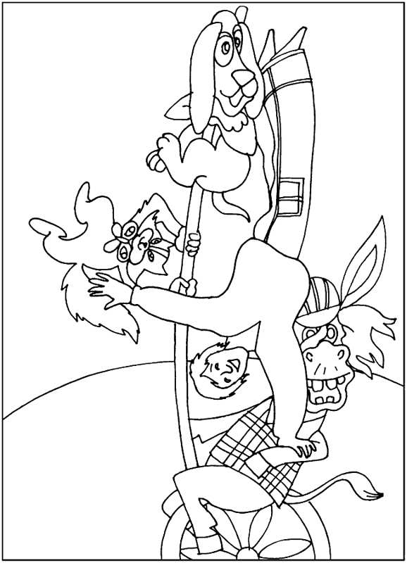 Бременські музиканти. Раскраска Радянський мультфільм, Бременські музики, пес, кіт, осел завантажити бесплатно онлайн