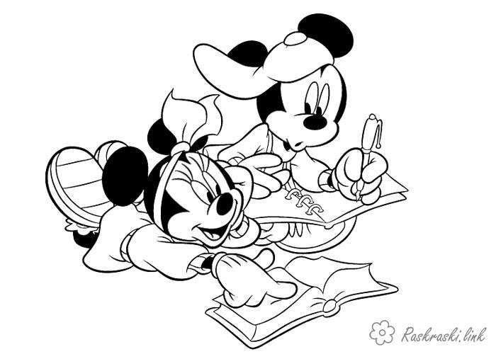 Міккі і Мінні читають книжки. Раскраска Міккі Маус, Мінні, книжки, розмальовки завантажити бесплатно онлайн