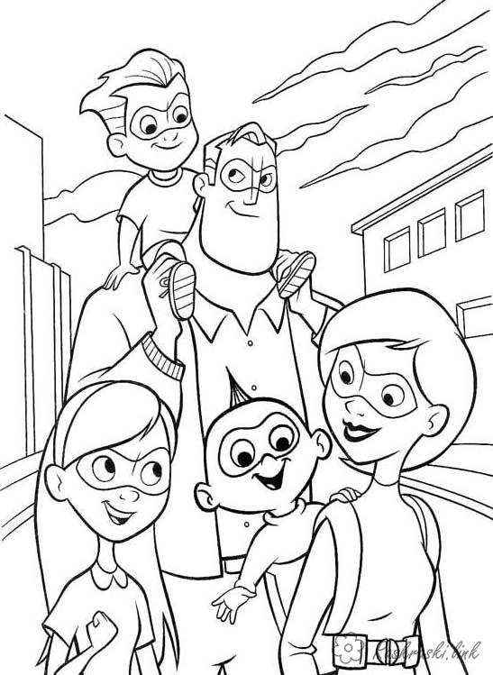 Розмальовка для дітей "Суперсімейка". Раскраска Дитяча розфарбування по мультфільму суперсімейка завантажити бесплатно онлайн