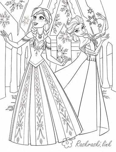 Принцеси з Холодного серця. Раскраска холодне серце, Ельза, анна, розмальовки завантажити бесплатно онлайн
