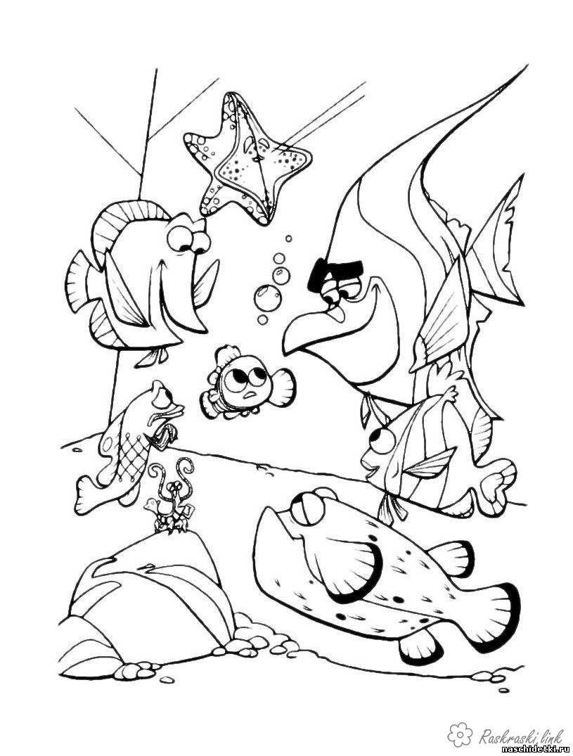 Морські збори. Раскраска розмальовки мультфільми, розмальовки в пошуках немо, Немо, рибки, морська зірка завантажити бесплатно онлайн