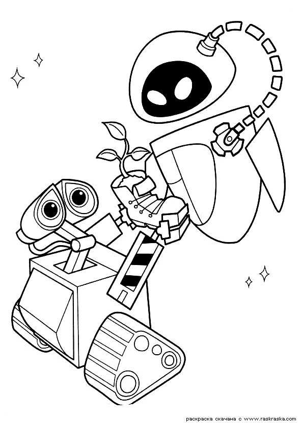Розмальовка "Валл. Єва і паросток". Раскраска Розмальовка герої мультфільму Вал і, Єва і Росток завантажити бесплатно онлайн