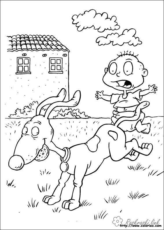 Томмі і собака. Раскраска розмальовки мультфільми, Nickelodeon розмальовки, Томмі, хлопчик, собака, дітки завантажити бесплатно онлайн