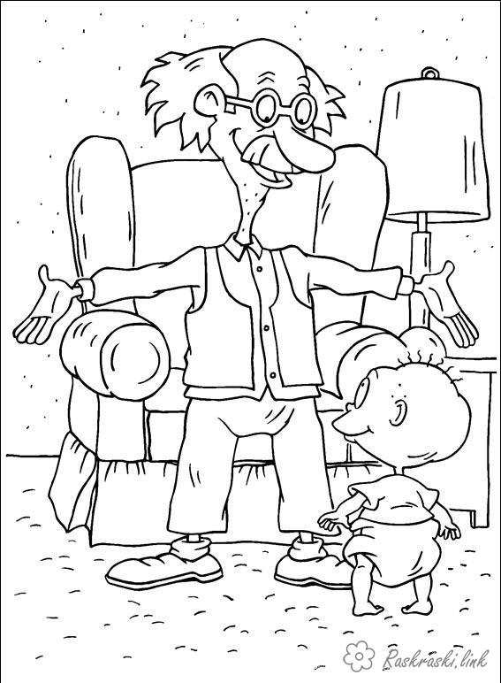 Томмі і дідусь. Раскраска розмальовки мультфільми, Nickelodeon розмальовки, Томмі, дідусь, хлопчик, дітки завантажити бесплатно онлайн