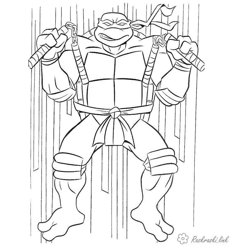 бойової удар нунчаками черепашки. Раскраска черепашки ніндзя завантажити бесплатно онлайн