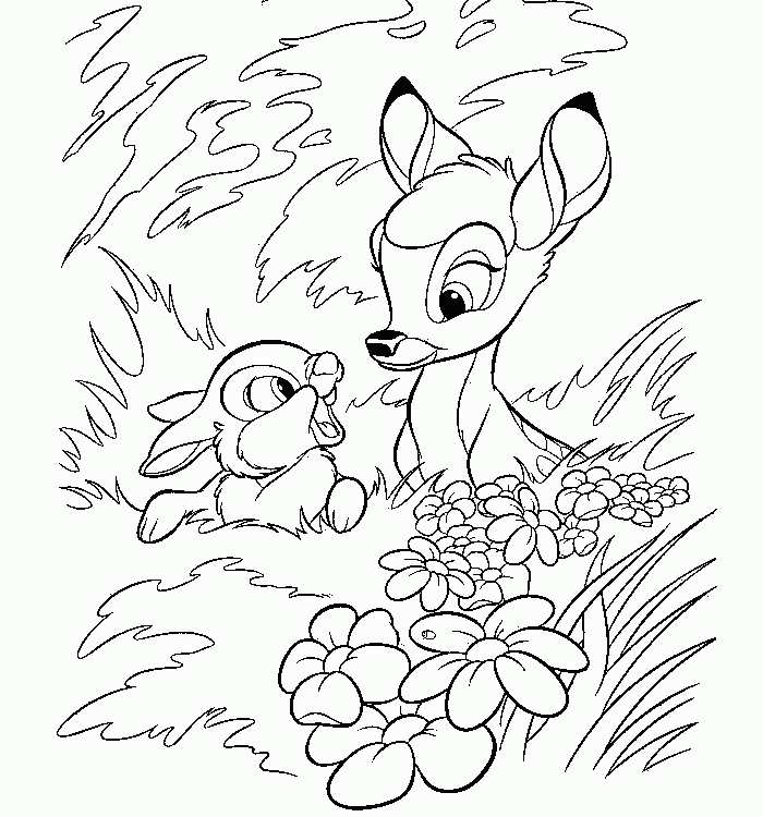 Оленя і зайченя ховаються в траві. Раскраска Оленя і зайченя, Дісней, Мультфільми завантажити бесплатно онлайн