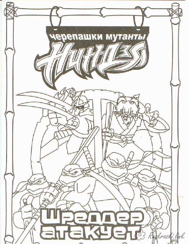 шреддер атакує. Раскраска черепашки ніндзя, розмальовки, розмальовки хлопчикам, teenage mutant ninja turtles, шреддер атакує завантажити бесплатно онлайн