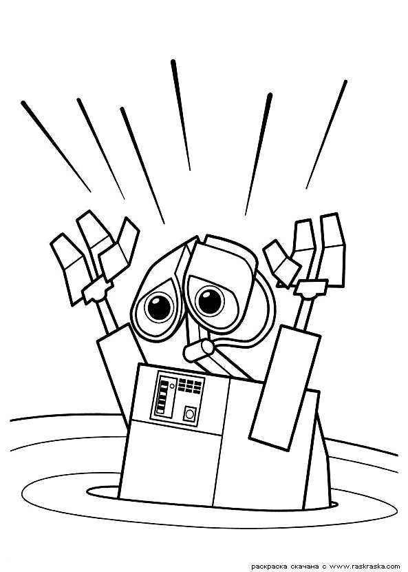 ВАЛЛ-І тоне у воді. Раскраска ВАЛЛ-І, розмальовки, вода завантажити бесплатно онлайн