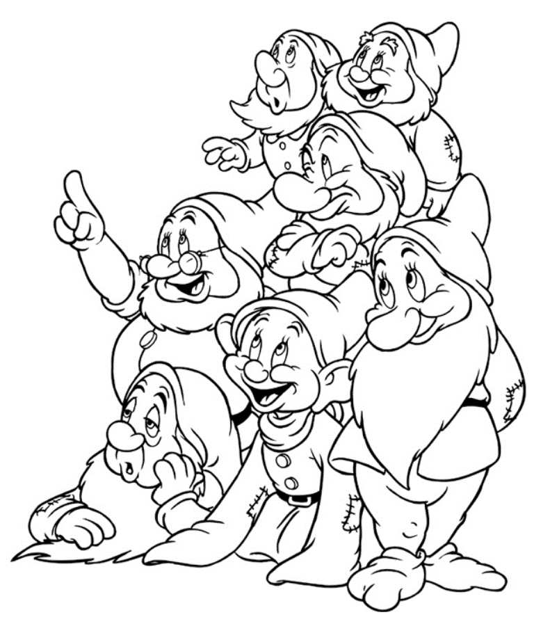 Сім гномів белоснежки. Раскраска розмальовки, Білосніжка і сім гномів завантажити бесплатно онлайн
