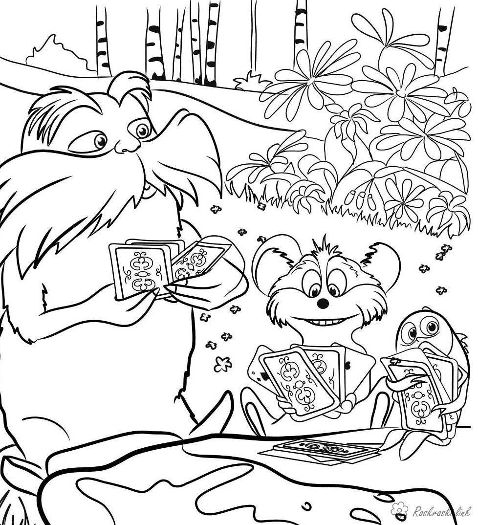 Лоракс грає в карти. Раскраска Лоракс, розфарбування, звірі, карти, ліс завантажити бесплатно онлайн