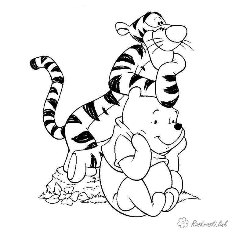 Вінні Пух і Тигр. Раскраска Вінні Пух, Тигр, мультфільм, розмальовки завантажити бесплатно онлайн