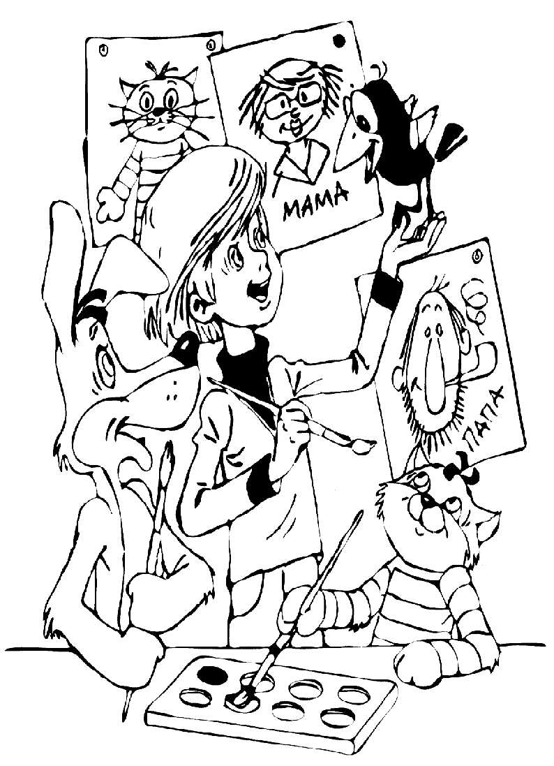 розфарбування троє з простоквашино. Раскраска розфарбування мультфільм троє з простоквашино завантажити бесплатно онлайн