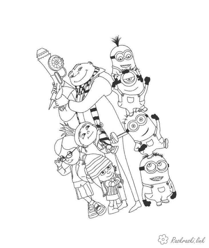 Грю з дівчатками і міньйонами. Раскраска бридкий я, розфарбування, міньйон, грю, дівчатка завантажити бесплатно онлайн