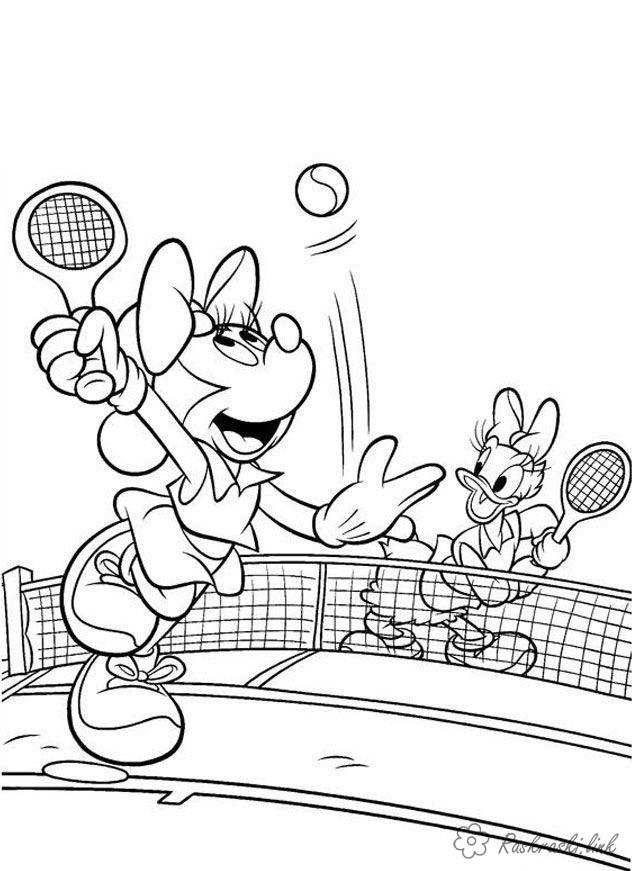 міні і Дейзі грають у теніс. Раскраска міні, Дейзі, спорт, розмальовки завантажити бесплатно онлайн