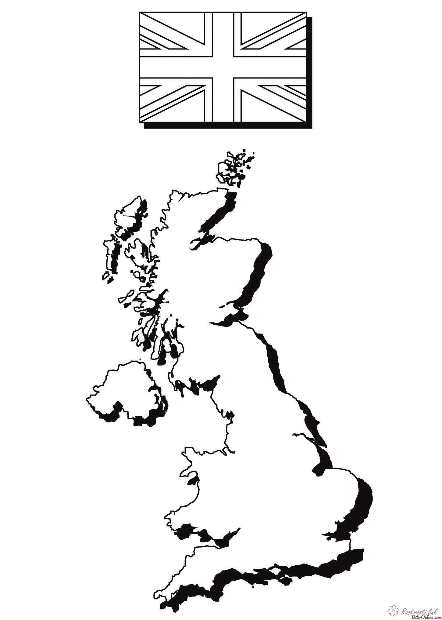 Розмальовка Карта Англії і прапор. Раскраска Розмальовка Карта Англії і прапор завантажити бесплатно онлайн