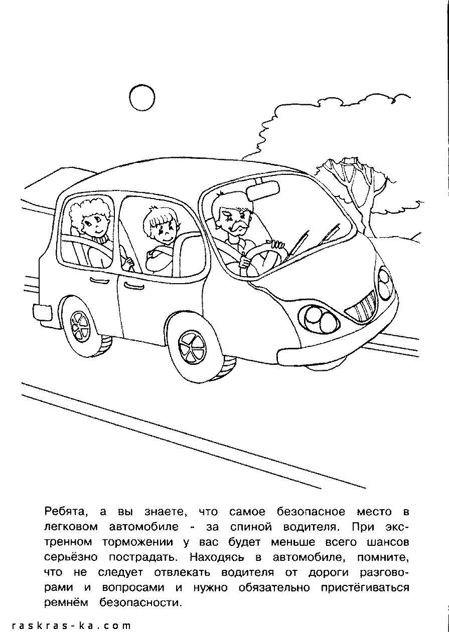 Розмальовка "Правила Дорожнього Руху". Раскраска розфарбування, автомобіль, діти, безпечне місце для пасажирів завантажити бесплатно онлайн