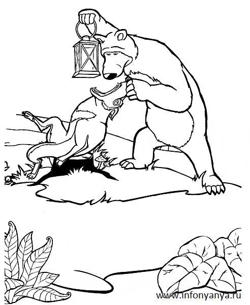 Міша і вовк розфарбування. Раскраска Розмальовка маша і ведмідь, миша, вовк, ліхтар завантажити бесплатно онлайн