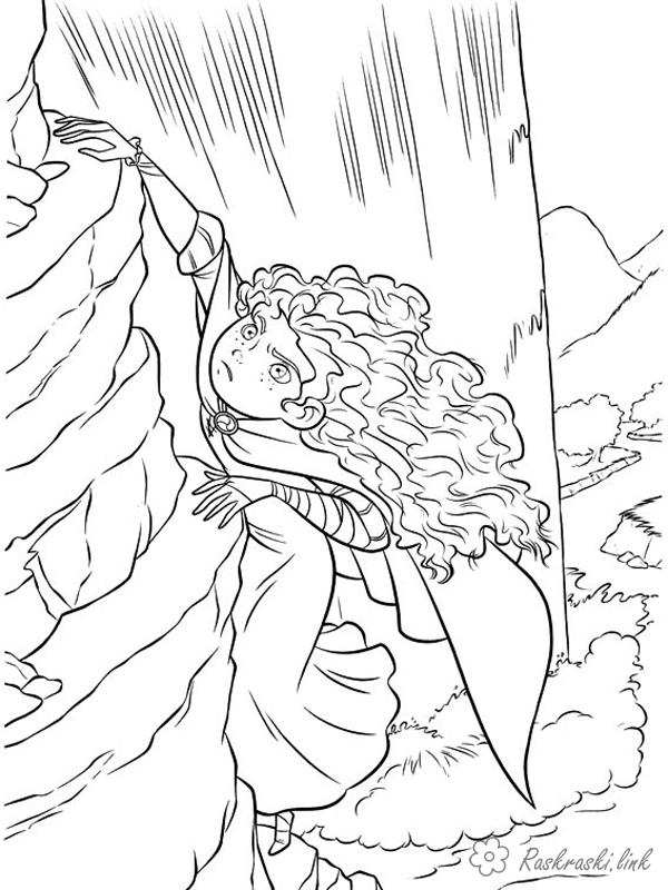 Меріда над урвищем. Раскраска розмальовки хоробра серцем, розмальовки мультфільми, Меріда, дівчина, скелі завантажити бесплатно онлайн