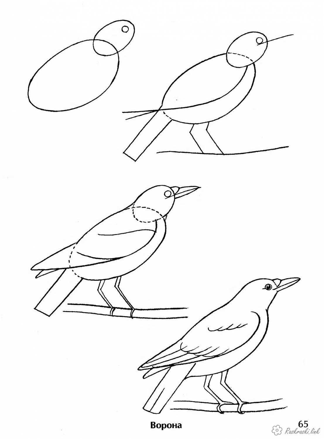 как нарисовать ворону поэтапно. Раскраска ворона поэтапно завантажити бесплатно онлайн
