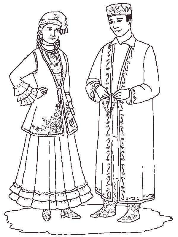 Татарські національні костюми. Раскраска татарські національні костюми, костюми татар, одяг татар завантажити бесплатно онлайн