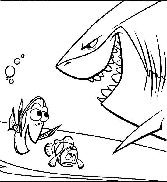 Немо і акула. Раскраска розмальовки мультфільми, розмальовки в пошуках немо, Немо, риба, акула завантажити бесплатно онлайн