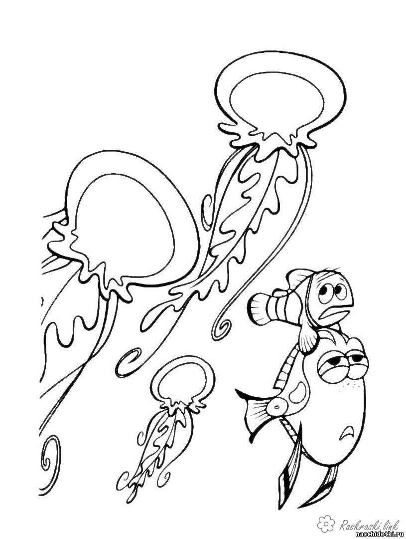 німо і медузи. Раскраска медузи, німо, розмальовки завантажити бесплатно онлайн