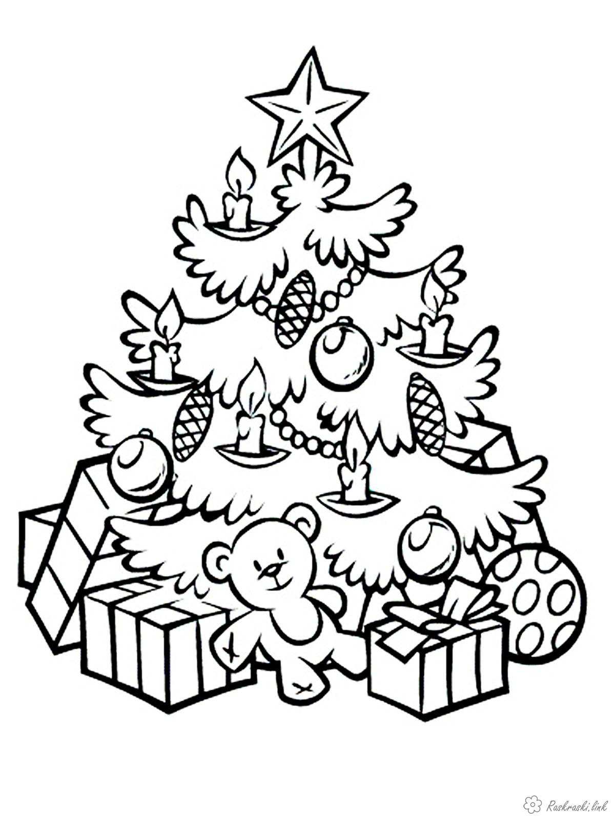 Розмальовка для дітей "Ошатна Ялинка". Раскраска Дитяча новорічна розфарбування святкове ялинка з подарунками завантажити бесплатно онлайн