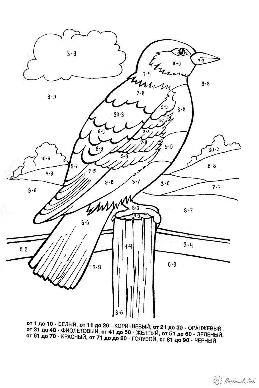 Птах, розмальовки за номерами. Раскраска розмальовки для дітей, розмальовки за номерами, птиця завантажити бесплатно онлайн