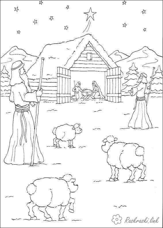 різдво. Раскраска різдво, ніч, ісус, розмальовки, народження завантажити бесплатно онлайн