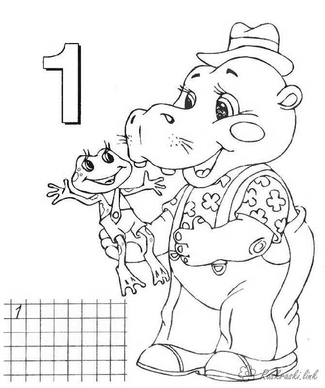 пропис одна бегемот і Лягушенок . Раскраска пропис одна бегемот і Лягушенок цифра одна завантажити бесплатно онлайн