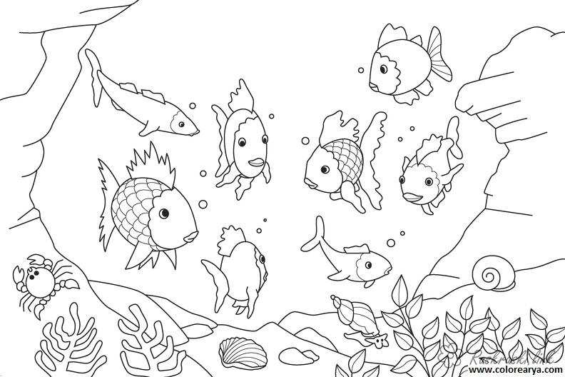 рибки в океані. Раскраска природа підводний світ рибки океан завантажити бесплатно онлайн