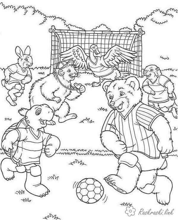 Звірі на футболі. Раскраска Звірі на футболі розфарбування, спорт, олімпіада завантажити бесплатно онлайн
