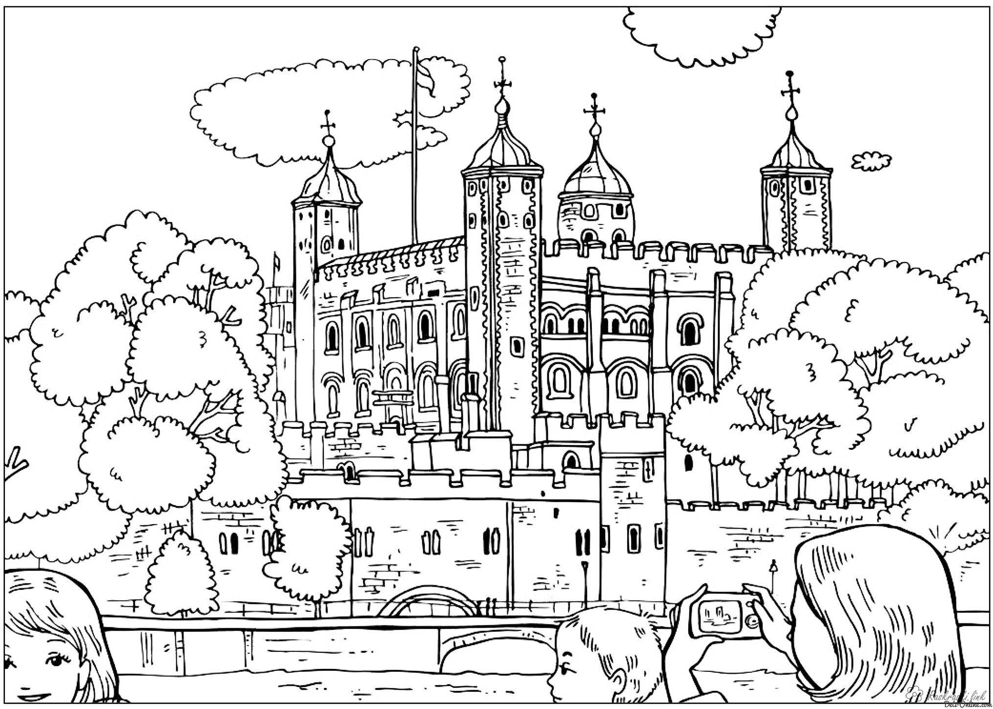 палаци Англії. Раскраска палаци Англії розфарбування завантажити бесплатно онлайн
