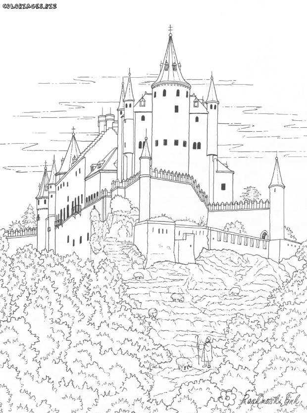 Замок. Раскраска розмальовки для дітей, подорожі, Європа, замок, палац, будівля завантажити бесплатно онлайн