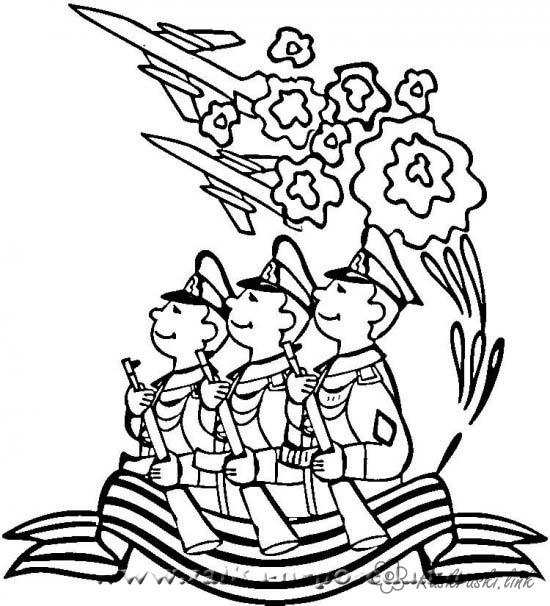 розмальовки до 9 травня день перемоги дитячі. Раскраска парад перемоги, солдати, літаки георгіївська стрічка завантажити бесплатно онлайн