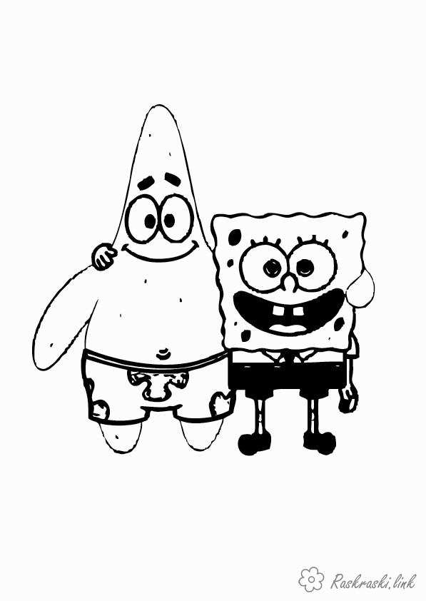 Губка Боб в обнімку з Патріком. Раскраска Губка Боб, Патрік, розмальовки завантажити бесплатно онлайн