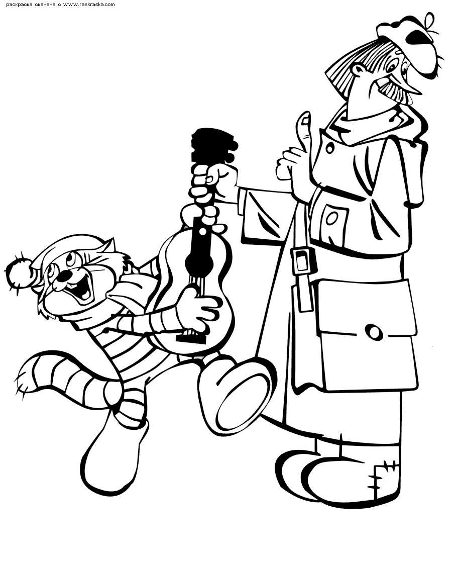 розфарбування троє їхніх простоквашино. Раскраска розфарбування Троє із Простоквашино, матроскин, гітара, печкин завантажити бесплатно онлайн