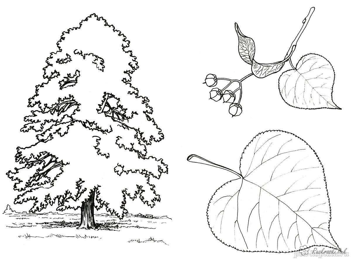 Дерево з пишним листям. Раскраска розмальовки дерева, розмальовки природа, дерево, лист завантажити бесплатно онлайн