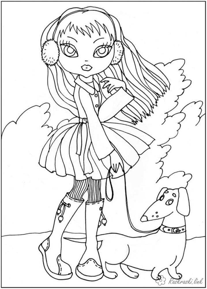 девочка собака ошейник наушники платье шмотки. Раскраска девочка собака ошейник наушники платье шмотки завантажити бесплатно онлайн